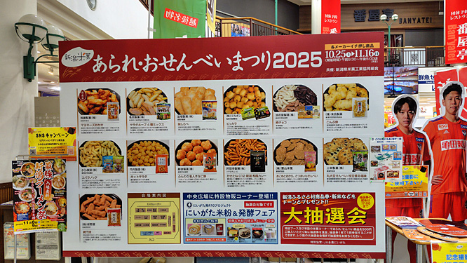 新潟市の道の駅では、毎年この時期になると「あられおせんべいまつり」を開催している。県内の米菓会社が集結してブースを出していて、オレも毎年1回は様子見に行っているので、本日行ってみた。