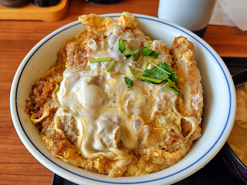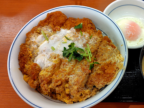 明らかに卵が多い! 比べてみると、ぜんぜん違うわ。確かに看板に偽りなし。以前はわざわざ追い卵(温泉卵)をしていたが、これだったら不要だな。値段は普通のカツ丼より100円高いが、温泉卵が120円なので、こっちの方がお得。そして、卵が1個増えただけなのに、結構な満足感。嗚呼、これはアリだわ。